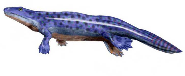 Fig. 14 : Ichthyostega, le plus ancien des vertébrés connus présentant des adaptations pour une locomotion autre que la nage